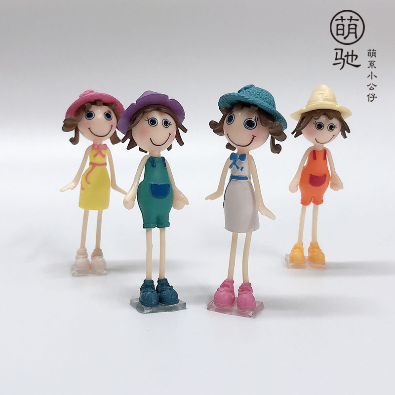 4 gaya topi jerami gadis dekorasi lanskap mikro boneka tokoh PVC Gantungan Kunci anime buatan tangan mainan gantung liontin