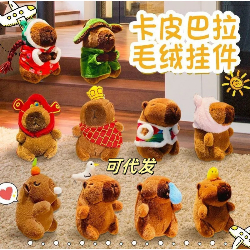 Gantungan kunci boneka kapibara berbulu lucu grosir tas sekolah liontin kecil pajangan boneka mesin penggenggam