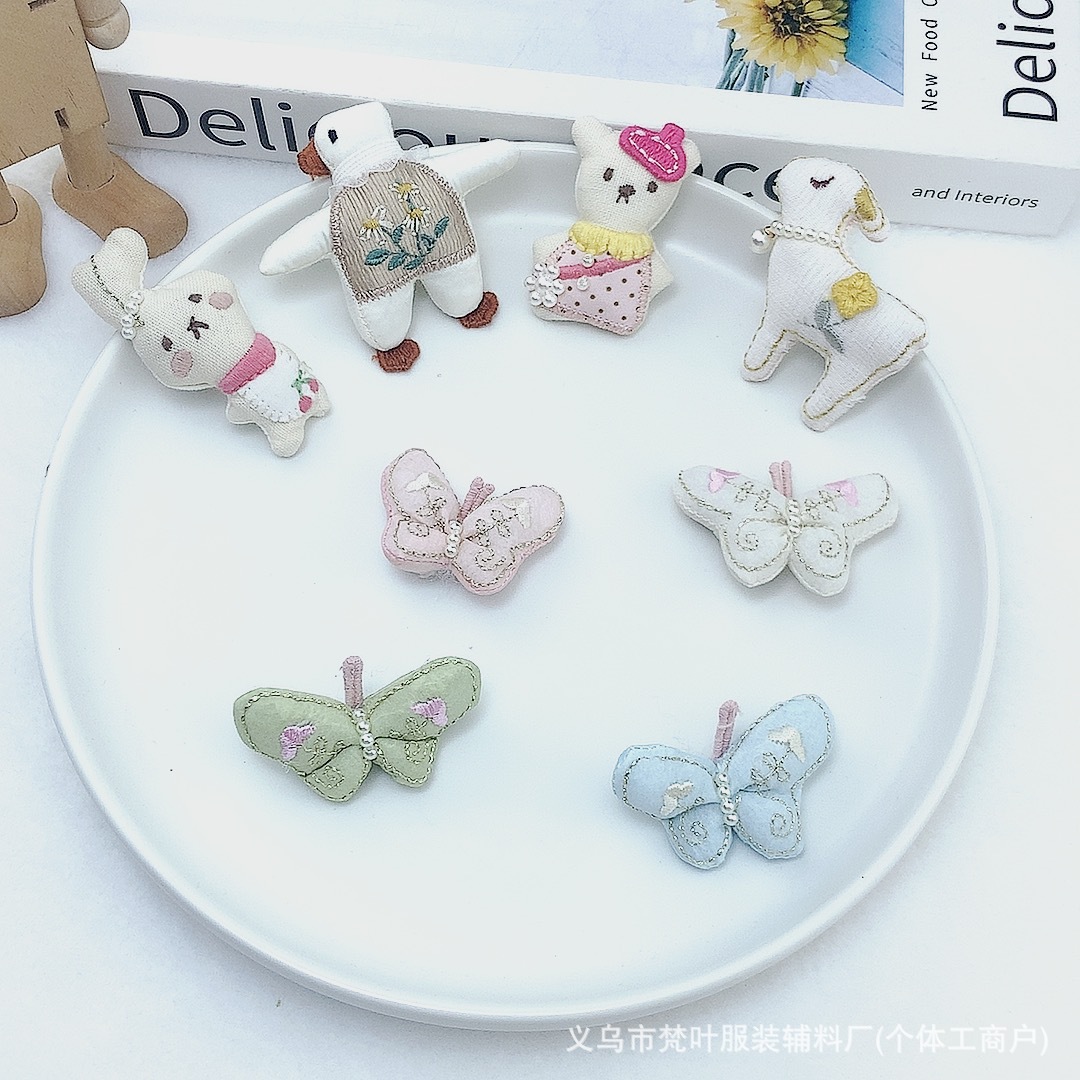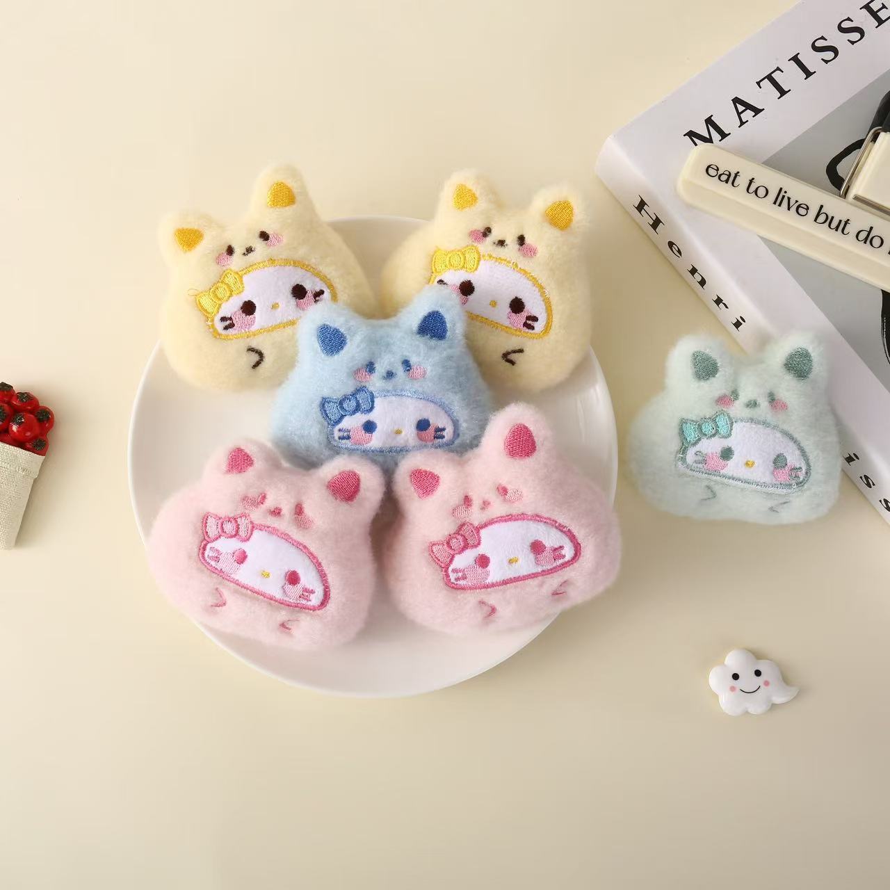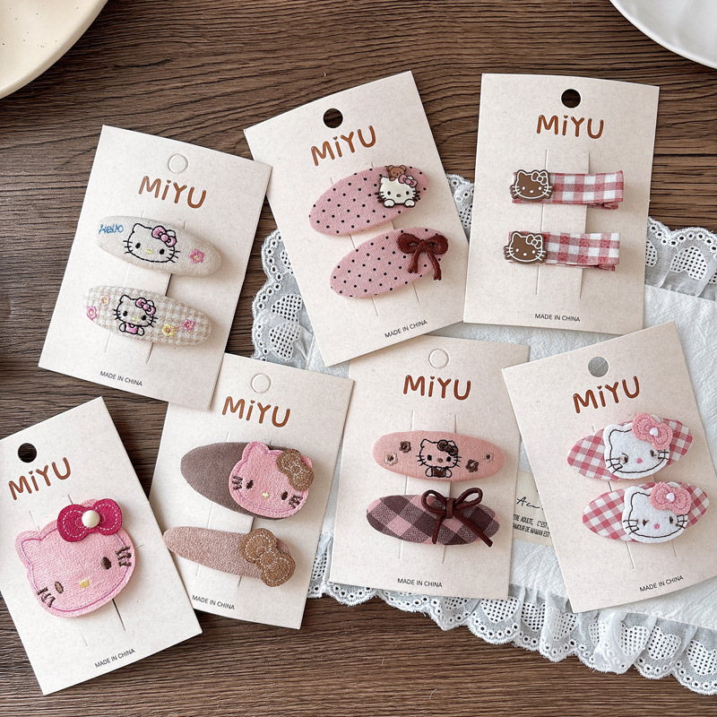 新款粉色系刺绣卡通可爱kt布艺发夹韩版格纹女孩刘海bb夹侧边发卡