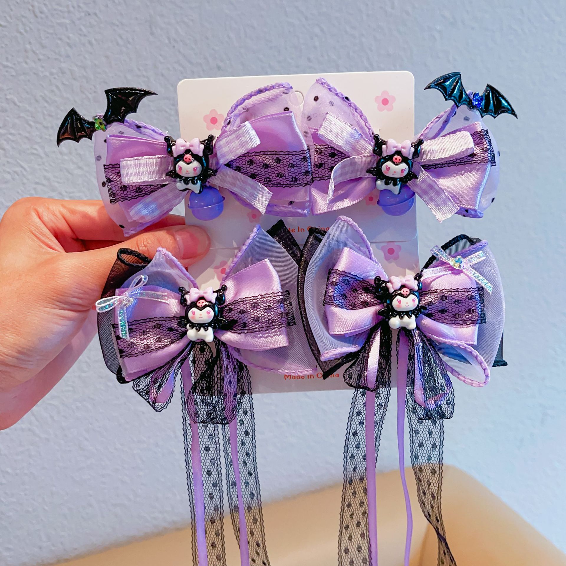 Kuromi Pita Kupu-Kupu Aksesori Rambut Buatan Tangan Anak-anak Anak Perempuan Jepit Rambut Tidak Melukai Rantai Dahi Pita Hadiah Putri Kecil Boneka