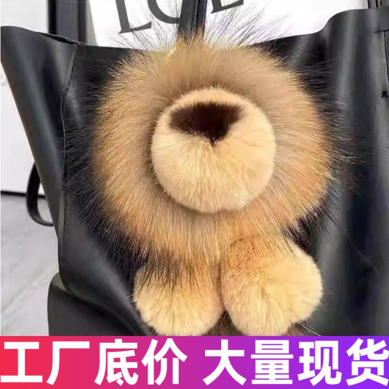 [Singa Kecil Bulu Kelinci Imitasi] Tas Bulu Imitasi Gantungan Kunci Mewah Aksesori Wanita Lucu