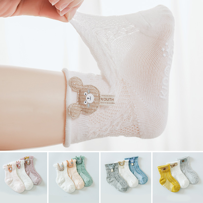 Kaus kaki jala bernafas bayi, sarung ceker setengah betis anti slip lantai aksesoris kartun musim panas dan semi