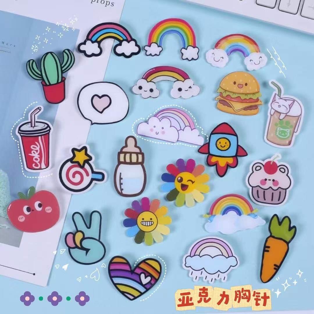 Bros Akrilik Kartun Kreatif Gaya Korea INS Aksesoris Gadis Bunga Lucu Pelangi Tas Pakaian Liontin Lencana