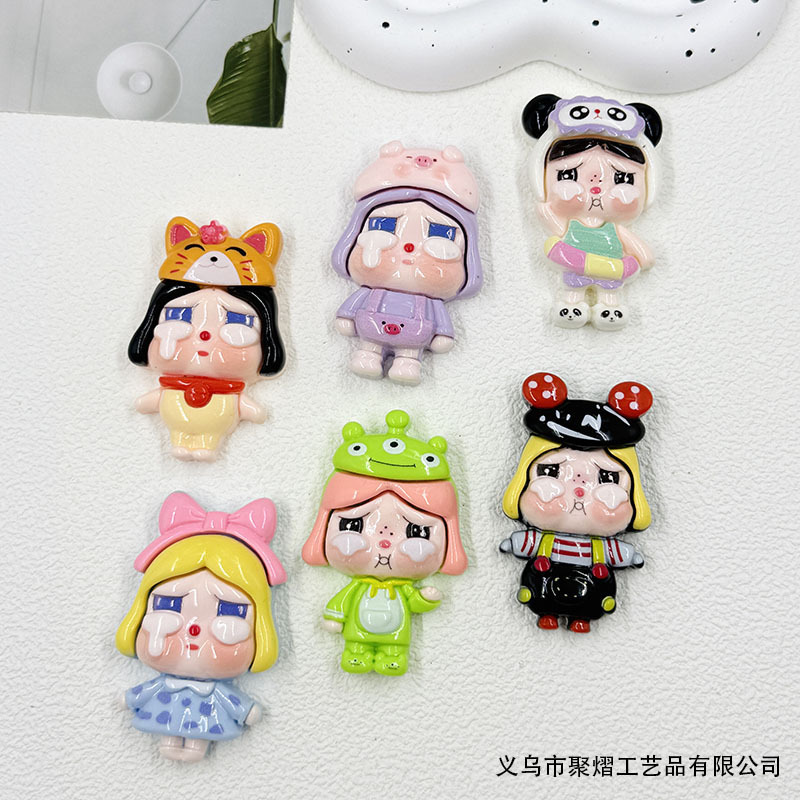 Pabrik Langsung Kartun Kotak Buta Besar Menangis Bayi Gadis Aksesoris Resin DIY Lem Krim Casing Ponsel Gantungan Kunci Trendi