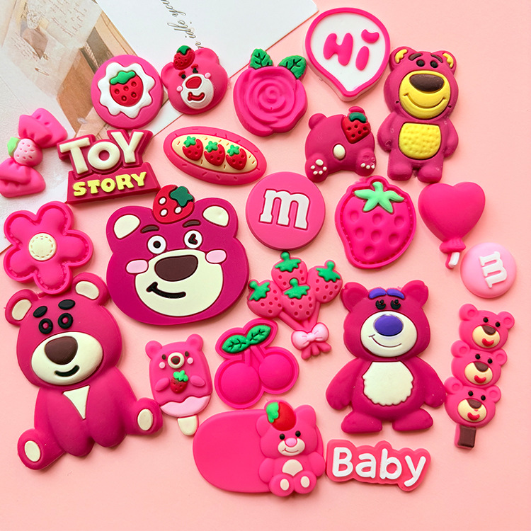 Aksesoris Karet Lembut Beruang Strawberry Kartun Swakarya Casing Ponsel Lem Krim Sepatu Lubang Hiasan Rambut Bunga Aksesoris Aksesoris Bahan
