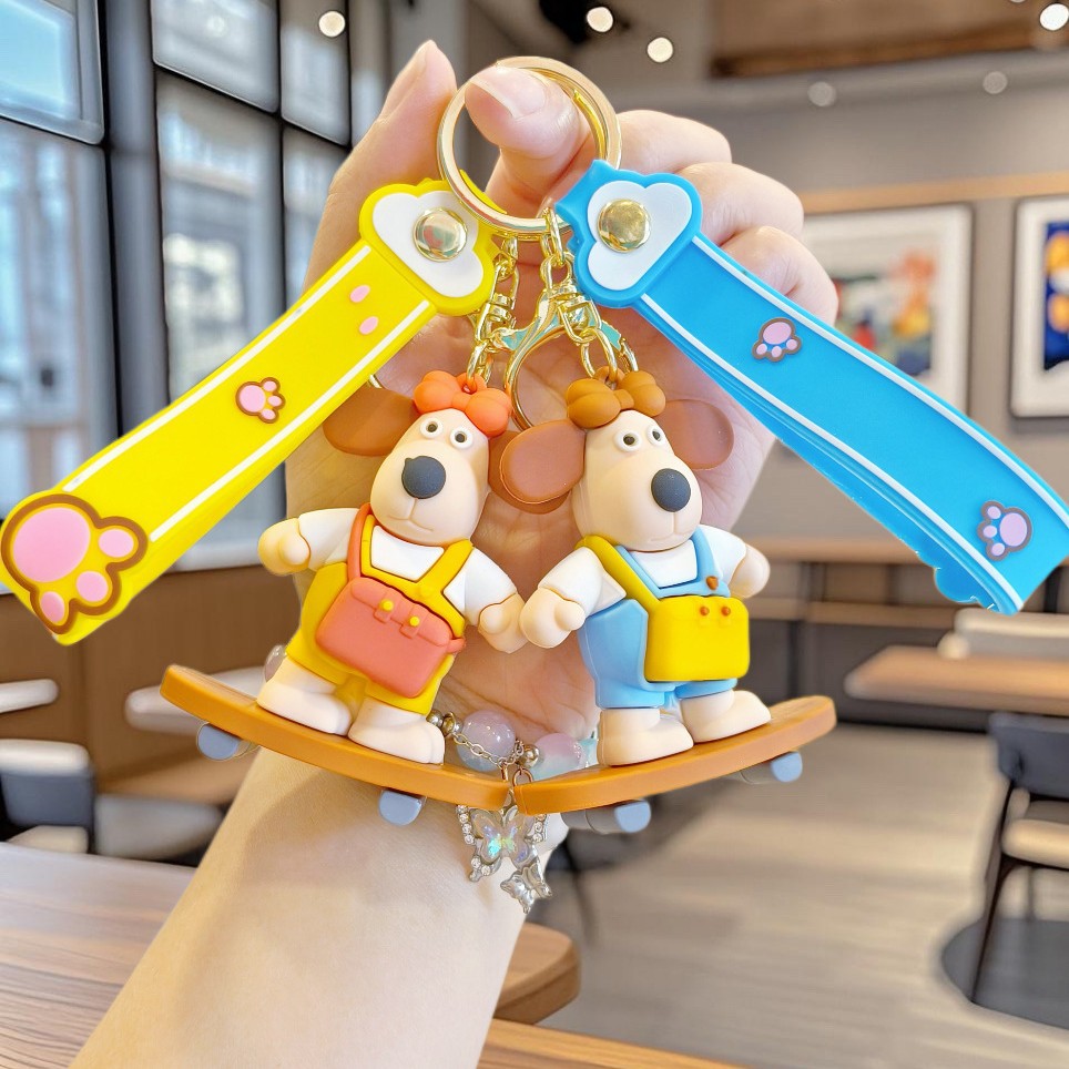 Gantungan Kunci Anjing Kepala Skateboard Kartun Model Baru Gantungan Kunci Mobil Boneka Lucu Aksesori Gantung Tas Sekolah Pelajar Grosir