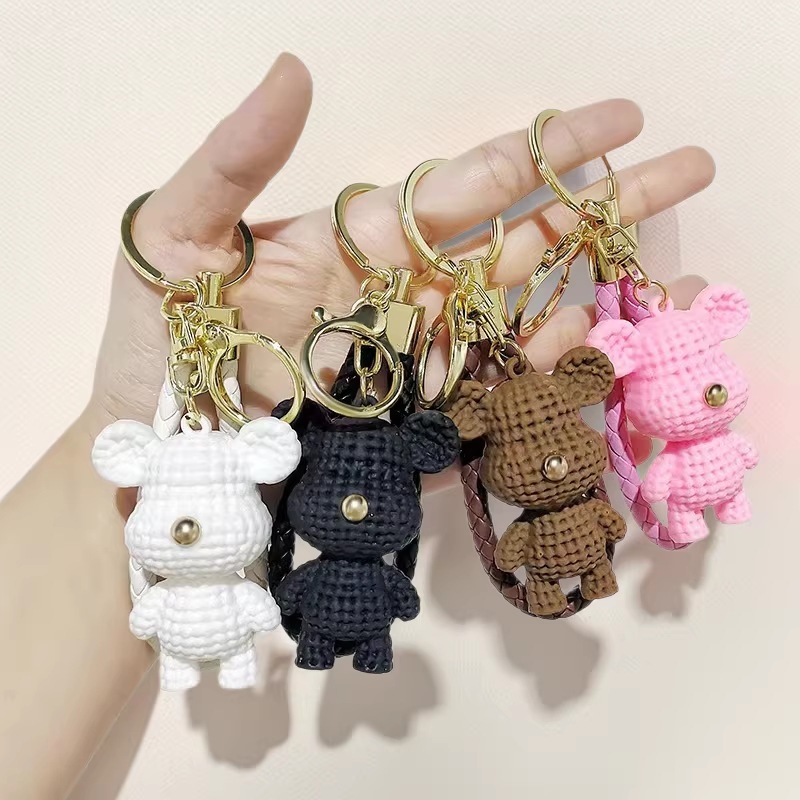 卡通创意毛线熊公仔钥匙扣网红时尚包包挂件汽车钥匙链可爱小礼品