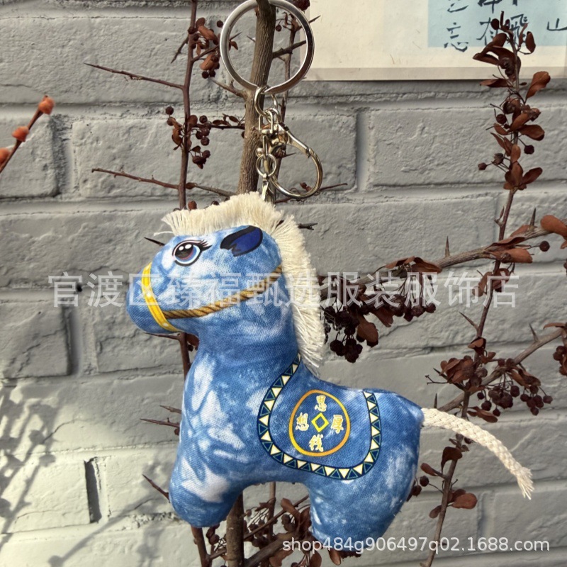 Suvenir perjalanan kreatif budaya buatan tangan celup biru celup biru dan putih gantungan kunci celup tas boneka kain beruang gantung