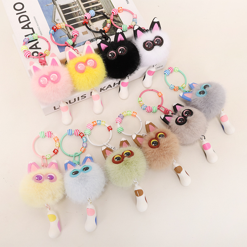 Gantungan Kunci Mobil Hewan Kelinci Kartun Aksesori Gantungan Gantungan Gantungan Bola Batubara Kecil Lucu Boneka Beludru Tas Sekolah