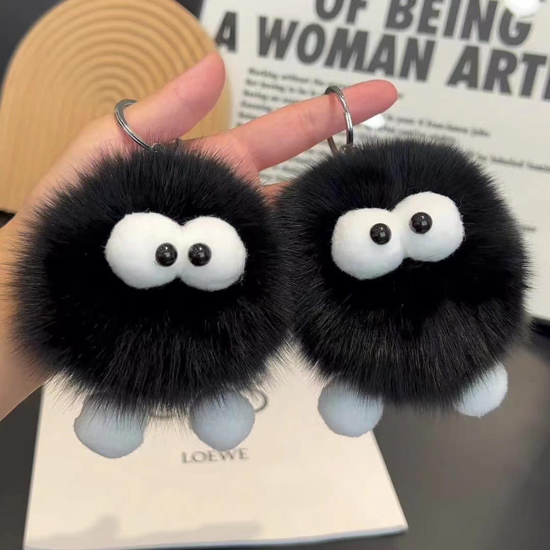 Fox gantungan kunci boneka mata besar, aksesori tas liontin kunci mobil monster Kecil mata besar