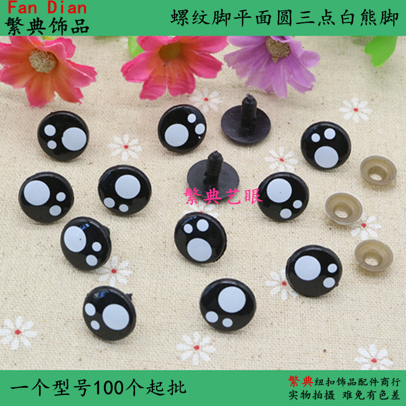Mainan seni aksesori boneka mata mewah datar bulat tiga titik kaki beruang putih mata kartun mata berkedip
