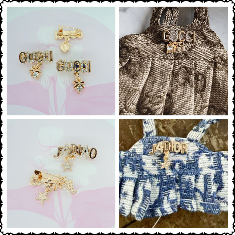 Baju Boneka Kain Rab Modis Bros Kecil Perangkat Keras Bertatahan Berlian Bahasa Inggris Rok Boneka dengan Tali Liontin Tanda Pin