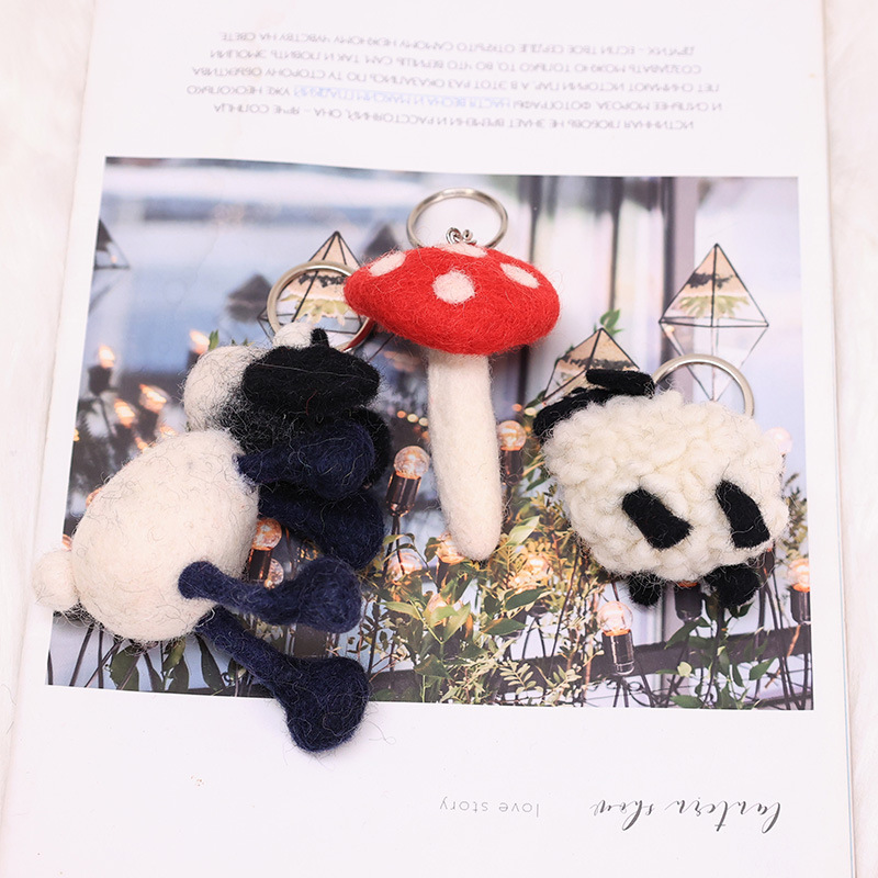 Boneka domba kain bulu wol lucu, cincin kunci tiga dimensi cincin kunci jamur merah aksesori tas gantung