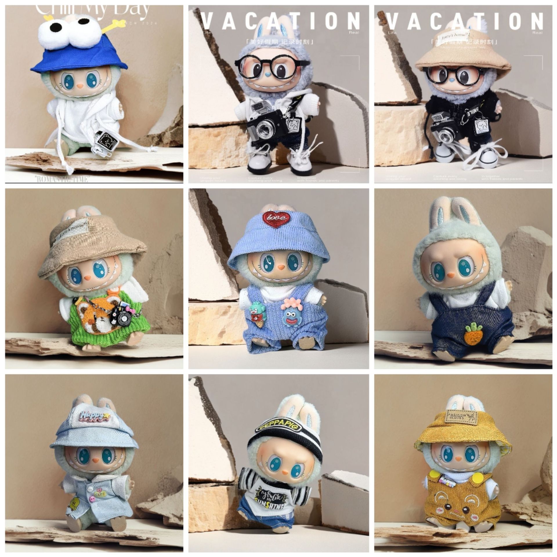 Pakaian Bayi Labu Pakaian Duduk Tiga Generasi Setelan Gaya Parfum Kecil Labubu Pakaian Duduk Macaron Generasi Satu dan Dua Generasi