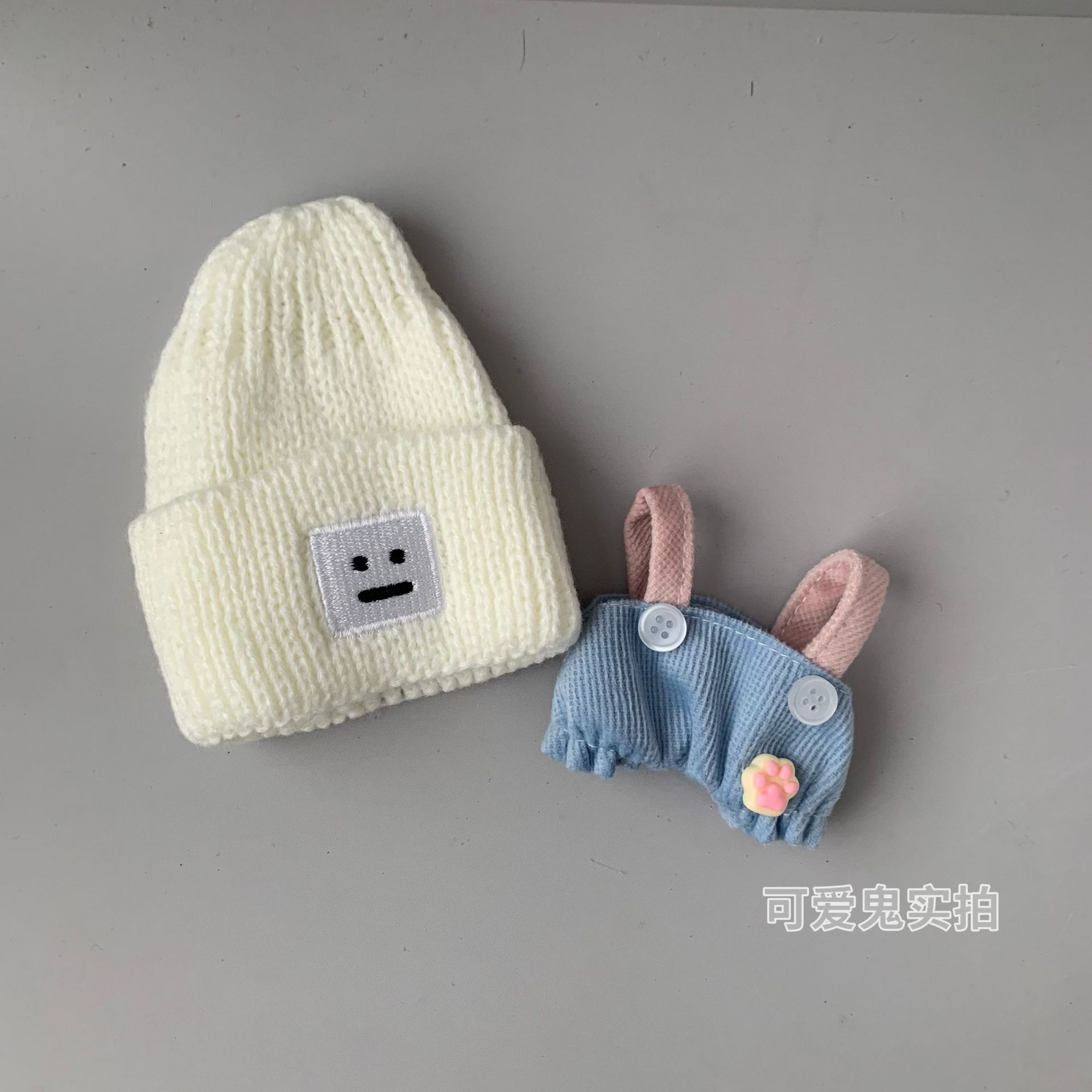 Pakaian Boneka Beruang 13CM Model Baru Topi Rajutan Lucu Set Celana Tali Biru Mainan Beludru Kacamata Boneka