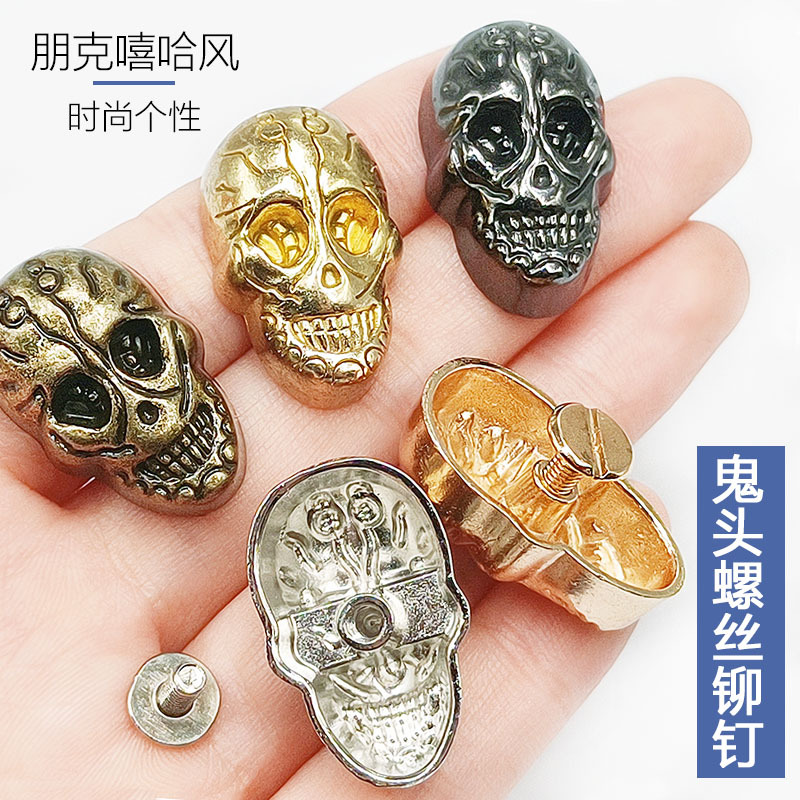 Aksesoris pakaian DIY grosir pabrik kepala hantu punk tengkorak kecil aksesoris perangkat keras dekorasi koper paku keling sekrup