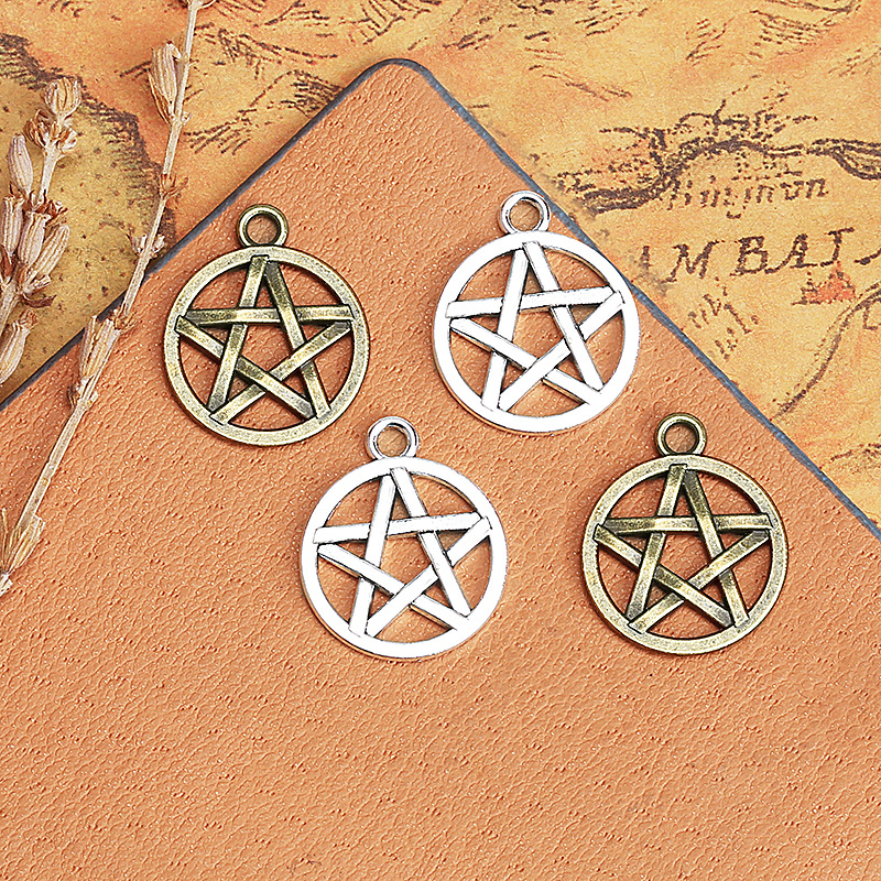 Bahan buatan tangan Retro 16MM lingkaran dua sisi bintang lima titik DIY Aksesori Aloi Aksesori Perhiasan bintang bulan matahari