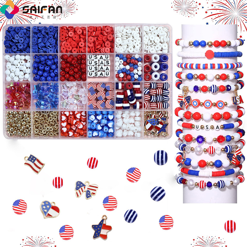 Cross-Border gelang manik-manik Hari Nasional Amerika gelang manik-manik diy paket bahan gelang manik-manik longgar manik-manik Aksesori perhiasan