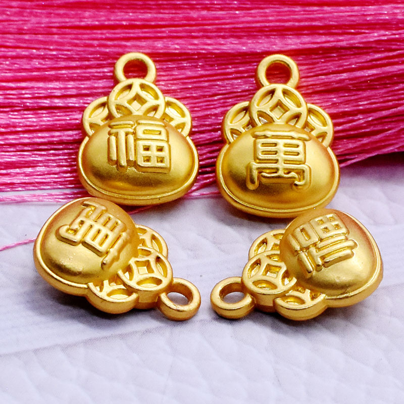 Pakaian mode Nasional Wanita fu, Aksesori logam, Tas Keberuntungan koin uang matte Xiangyun fu karakter kalung liontin