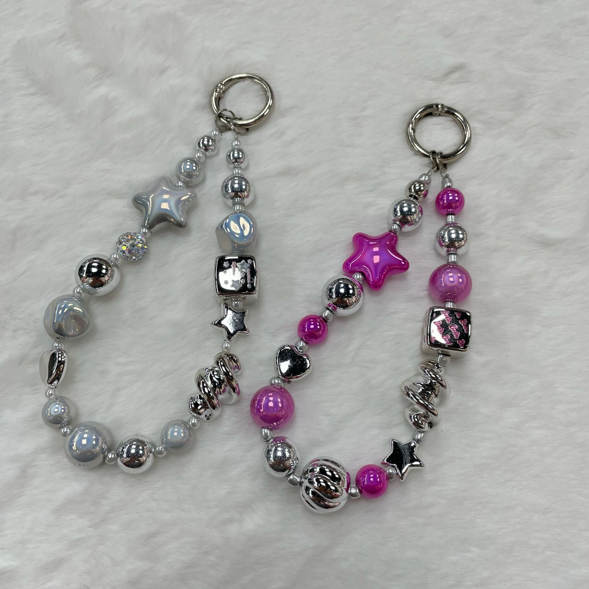 Manik-manik mimpi manik-manik gelembung cahaya laser keren manis reflektif Swakarya lubang lurus lima titik gelang manik-manik bulat rantai bintang lima titik