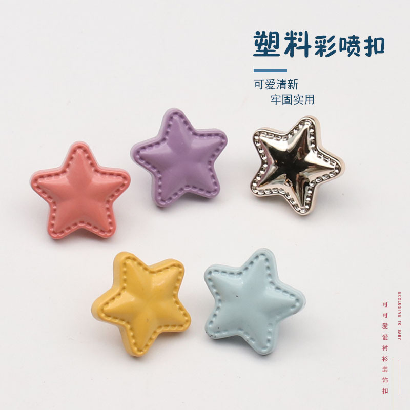 Spot supply bintang lima runcing kancing elektroplating bintang warna kancing cat baju anak-anak sweter dekoratif gesper