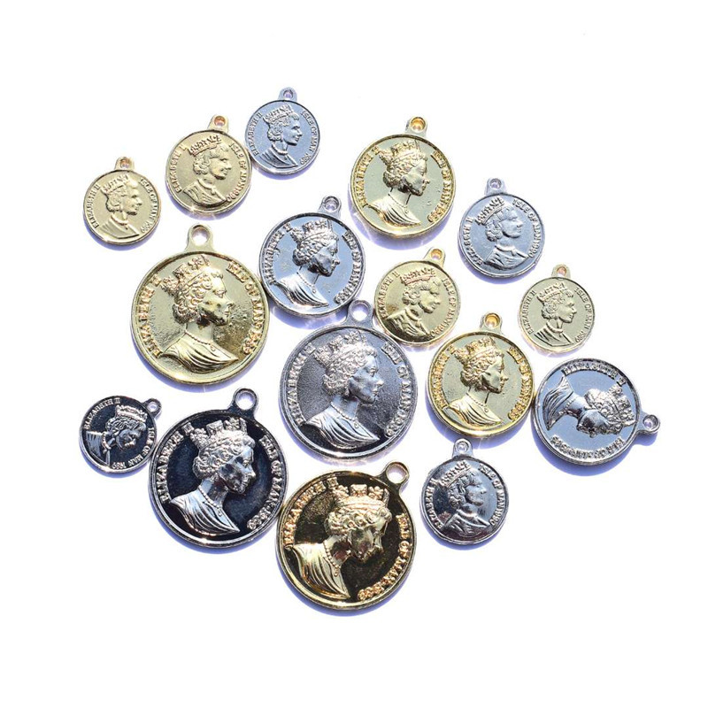 Baru Eropa dan Amerika koin emas retro ratu kecantikan kepala potret perhiasan aksesori buatan tangan DIY kalung anting liontin aksesoris