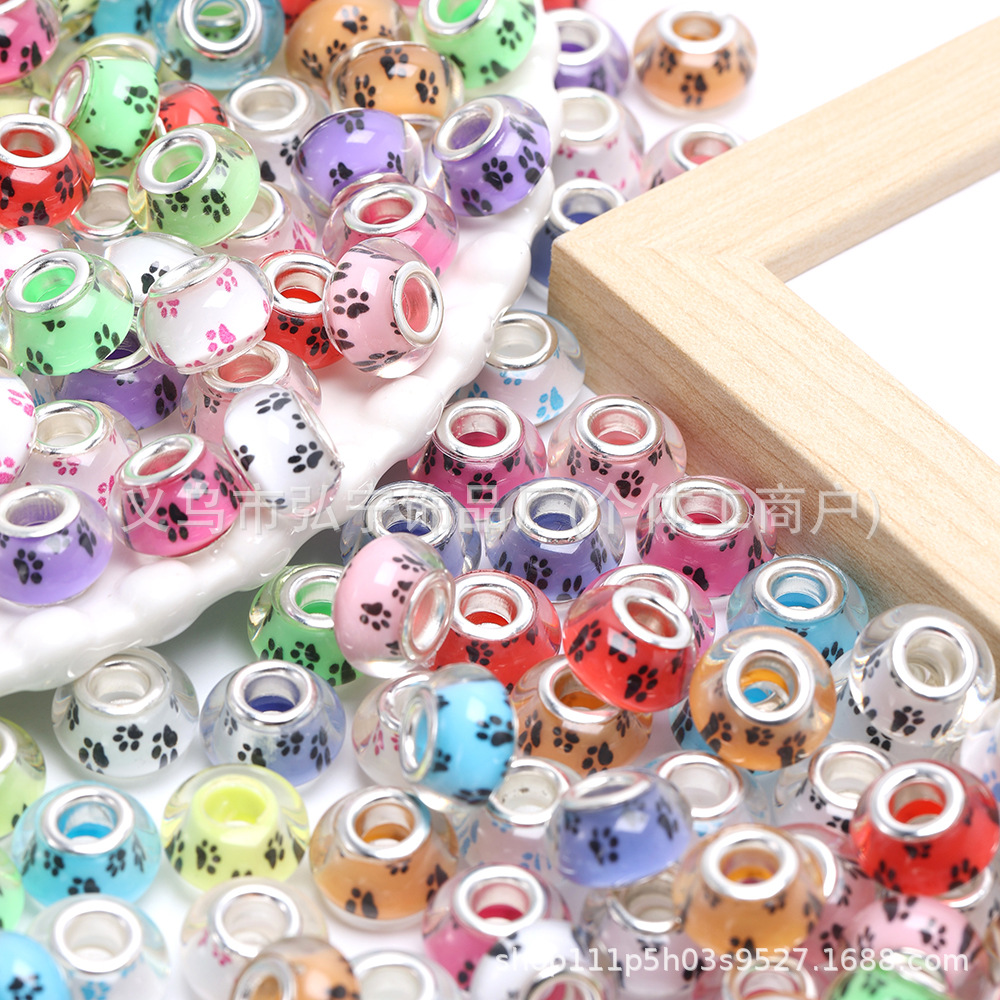 大孔树脂光面彩色狗爪卡通大孔珠 diy时尚手链串珠散珠配件