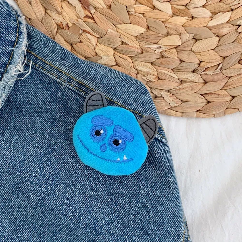 Pakaian Monster Berbulu Biru Bertanduk Ganda Kartun Kaus Kaki Syal Bros Boneka DIY Beludru Aksesori Boneka Beludru Gaya Instagram Boneka Beludru