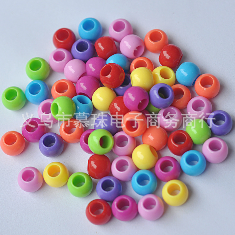 10/12/14mm manik-manik bulat lubang besar warna solid manik-manik akrilik rantai tali tali baju renang aksesoris bahan DIY