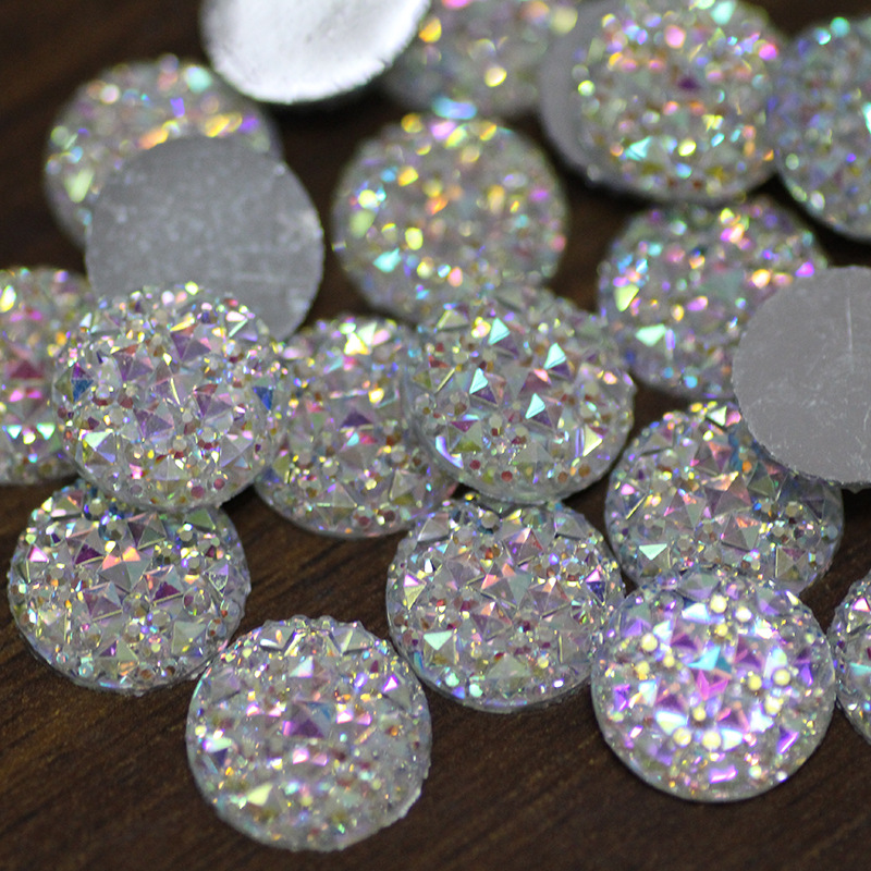 14mm bulat putih AB berbintang resin non-lubang berlian imitasi pakaian datar baju dansa aksesori dekorasi