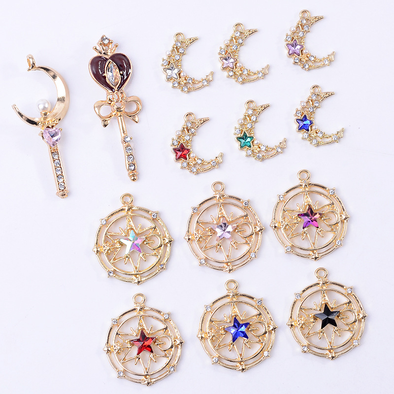 DIY anting kalung aksesoris perhiasan tongkat ajaib enam runcing bintang bulan berlian paduan Sihir Bintang liontin bulan