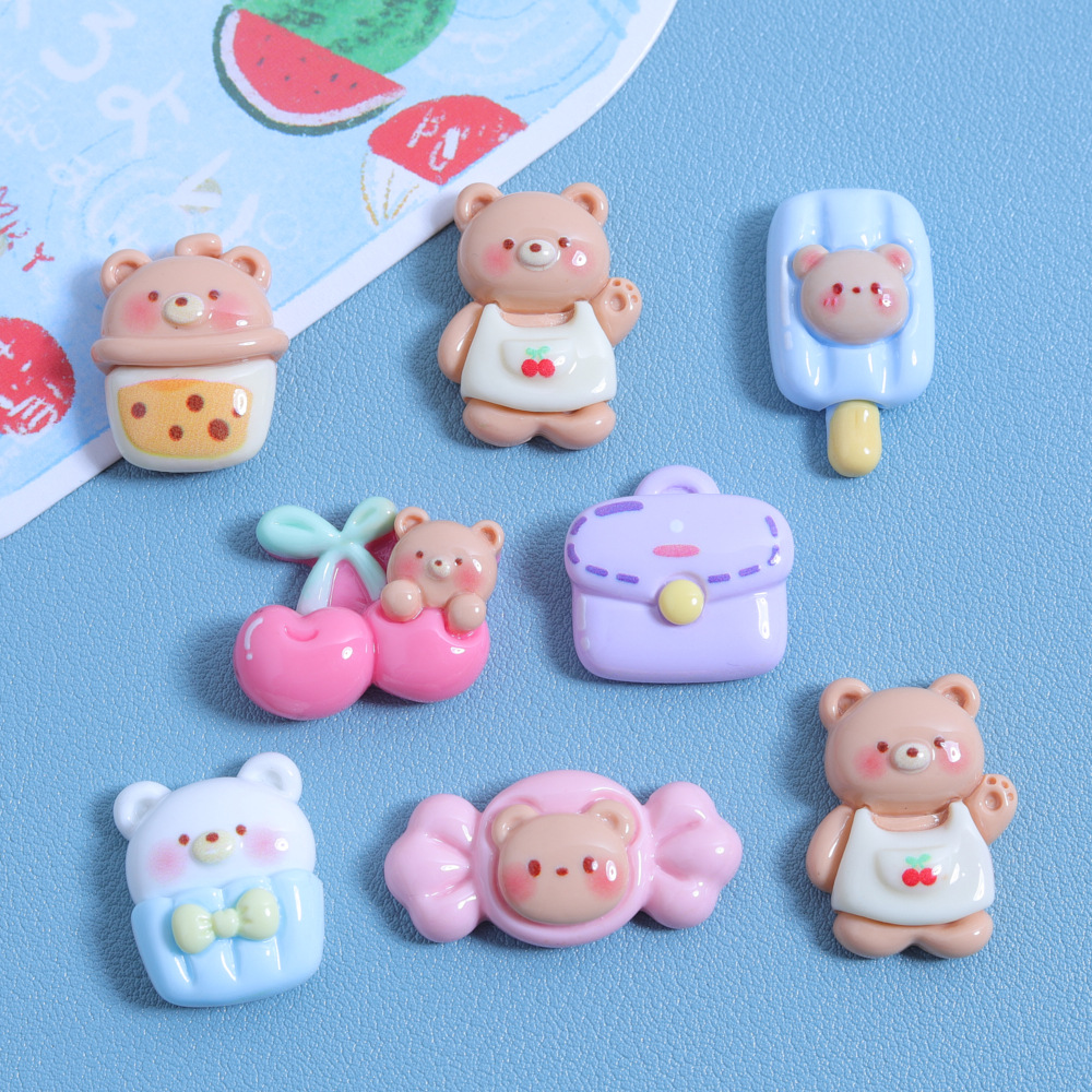 Lem krim diy segar beruang ceri klip cangkang ponsel aksesori resin buatan rumah stiker kulkas bahan perhiasan