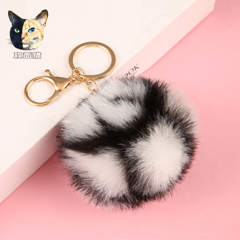 Liontin kunci langsung dari pabrik bulu bola bulu dua warna hitam dan putih bulu bola imitasi bulu kelinci Rex aksesori pakaian anak perempuan sekolah liontin tas