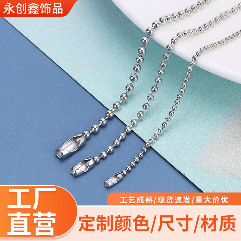Pasokan langsung pabrik baja tahan karat rantai manik besi rantai manik 2.4MM rantai manik logam tag rantai manik-manik daftar elektroplating
