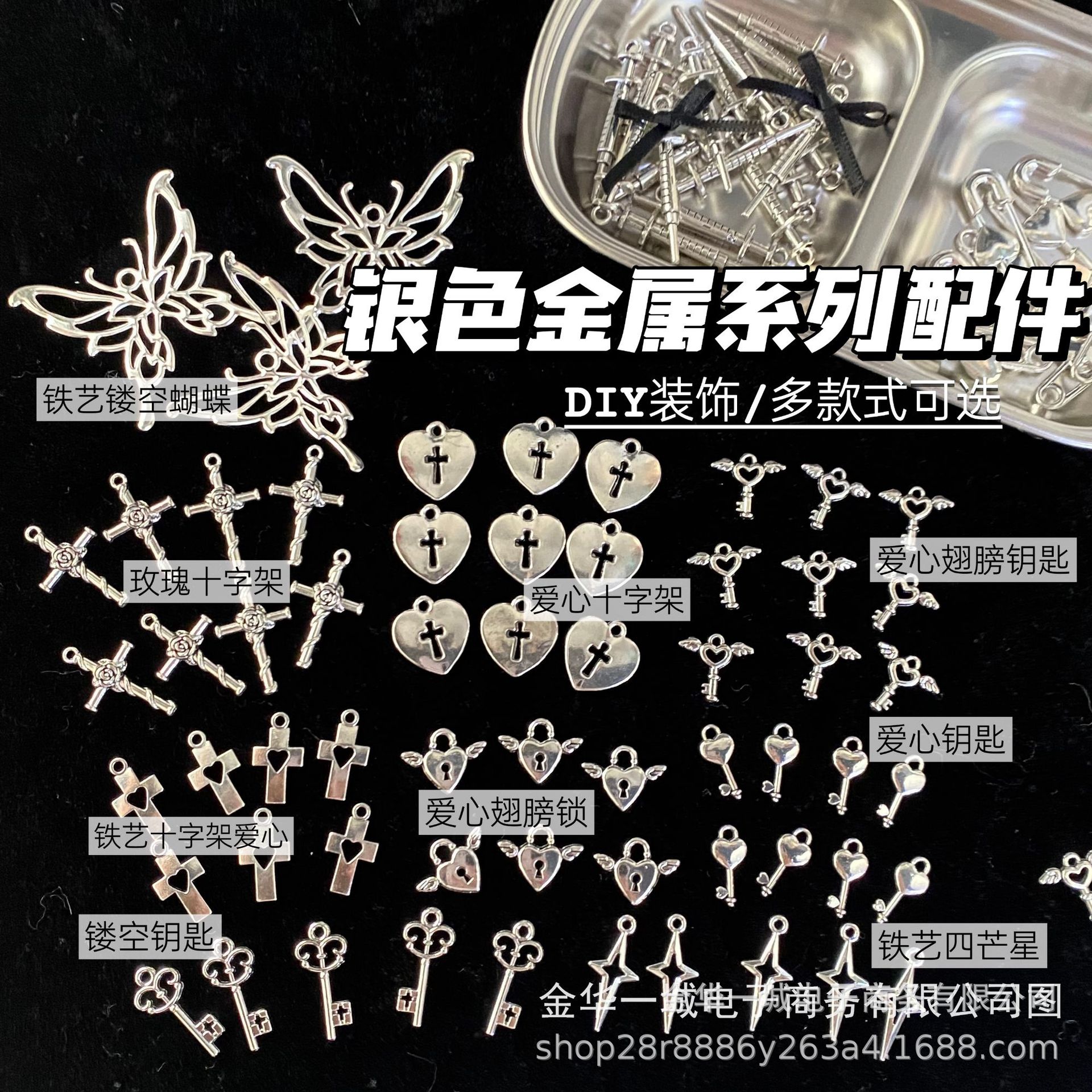 Berbagai aksesoris dekorasi logam perak gaya INS aksesoris logam
