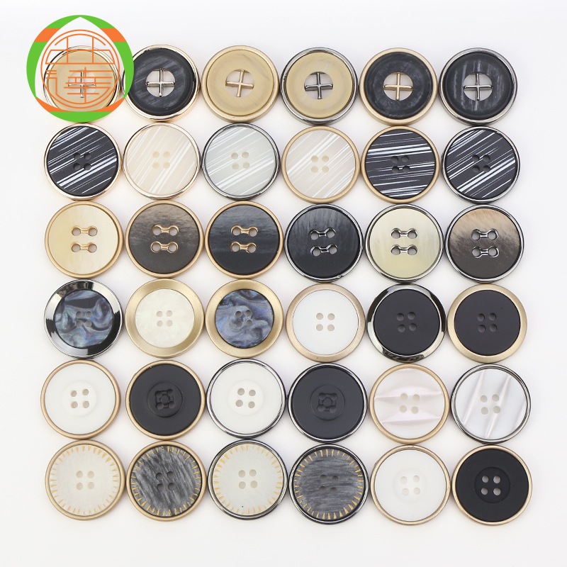 Kancing plastik ekspor lintas batas kancing negara Yongjia setelan grosir jaket mantel wol bulat jahitan Ganda kancing empat mata