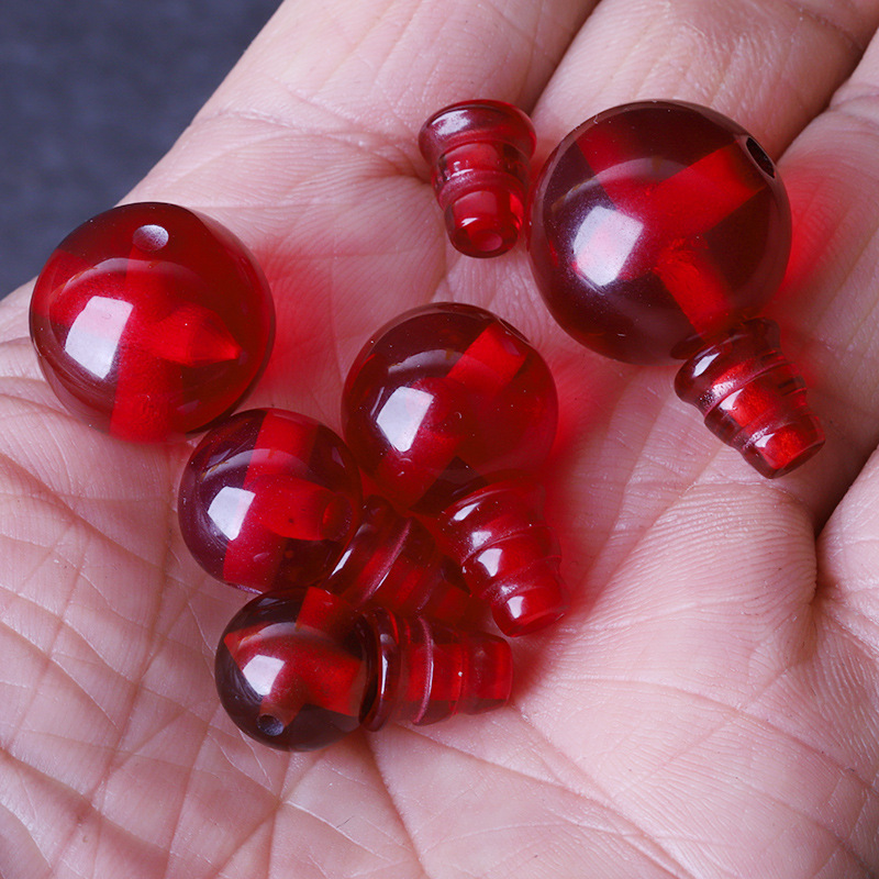 Batu amber darah imitasi Resin kepala Buddha tiga cara manik bulat manik longgar spacer DIY gelang perhiasan Aksesori produk setengah selesai grosir