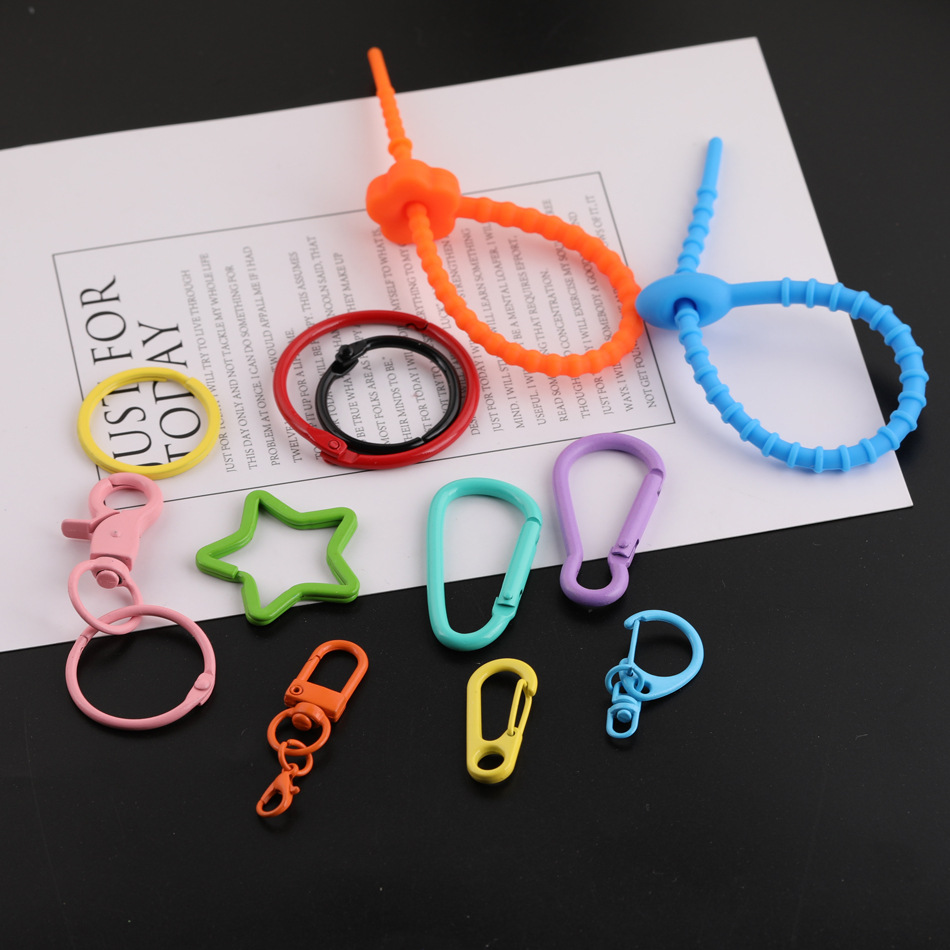 Model Campuran Macaron Cat Warna Warna-Warni Cincin Gantungan Kunci Tali Kecebong Bintang Lima Persegi Gesper Boneka Buatan Tangan DIY