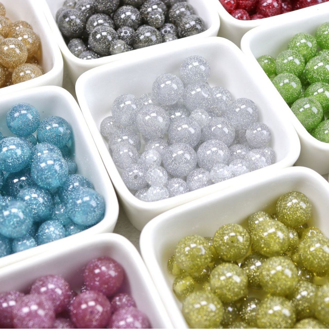 diy爆闪钻砂树脂配件星空闪粉散珠手机链材料批发串珠圆珠手钻球