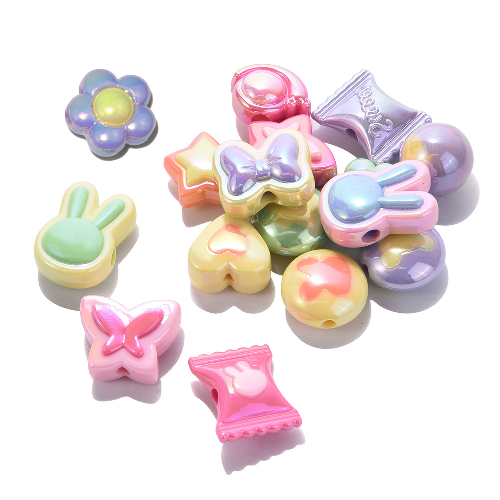 Akrylik Ulv Berlapis Manik-manik Berlapis Kupu-kupu Festival Cinta Gelang Manik-manik Lubang Lurus Cincin Rambut Gantungan Kunci Aksesori Perhiasan DIY