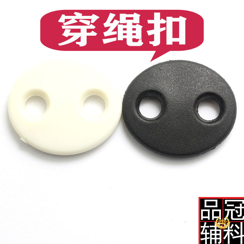 Gesper tali dua lubang, penahan angin kancing dua mata nilon plastik babi gesper hidung Putih Hitam