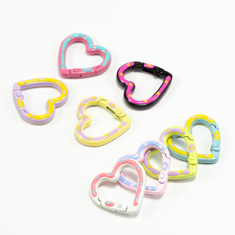 Cat warna cinta musim semi gesper berbentuk hati cincin pegas terbuka gantungan kunci DIY aksesori perhiasan cincin penghubung Aloi