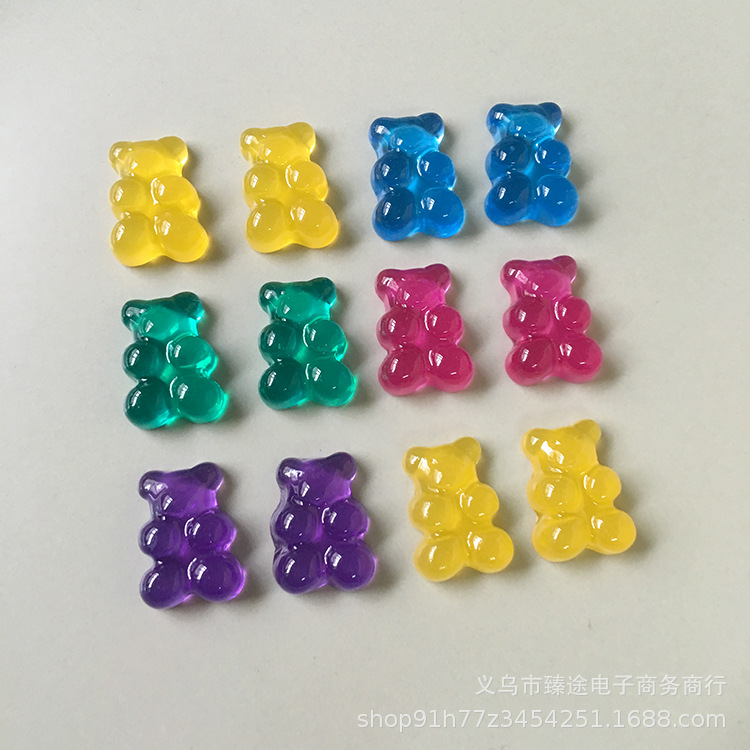 Kartun lucu jeli tembus cahaya warna beruang resin setengah pil Aksesori tambalan diy anting stud bahan perhiasan grosir