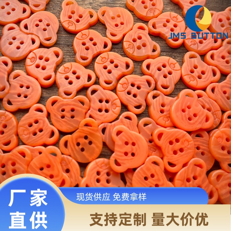 Tongkat Resin bunga beruang kancing oranye, pakaian anak-anak dekoratif gesper kardigan kardigan kartun lucu empat mata gesper jahit tangan