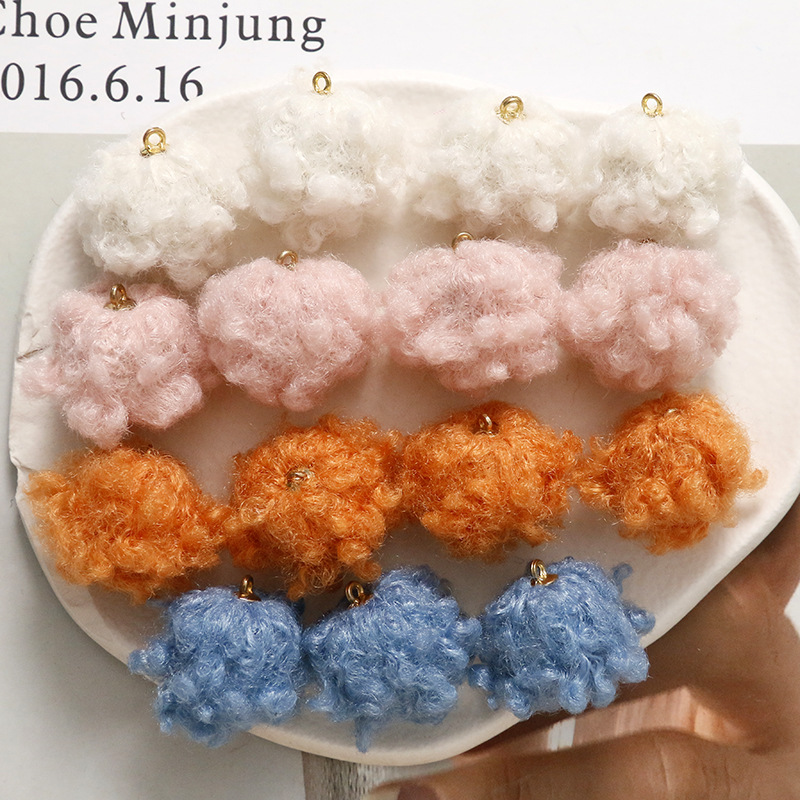 Gelang warna wol domba gaya sama Buku Merah Kecil liontin bola rambut gantung diy anting bulat bahan jepit rambut grosir