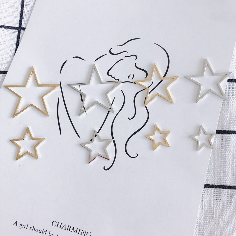Aksesori Perhiasan DIY paduan elektroplating grosir berlubang emas pribadi dan perak berongga anting-anting bintang lima-sudut aksesoris anting-anting