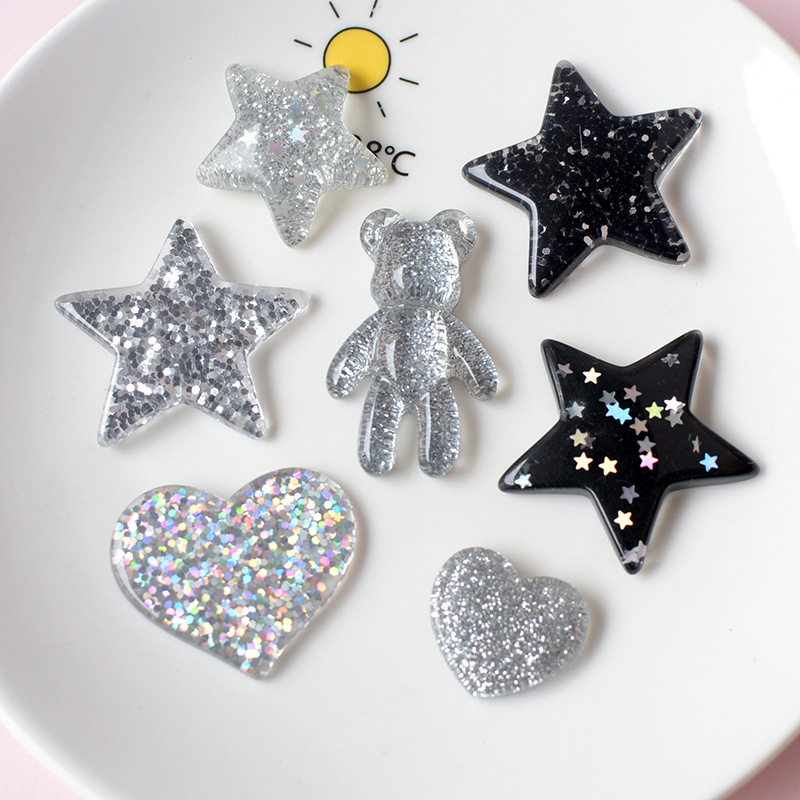 Glitter kekuatan beruang lima runcing bintang resin aksesoris lubang sepatu bahan grosir pj1090