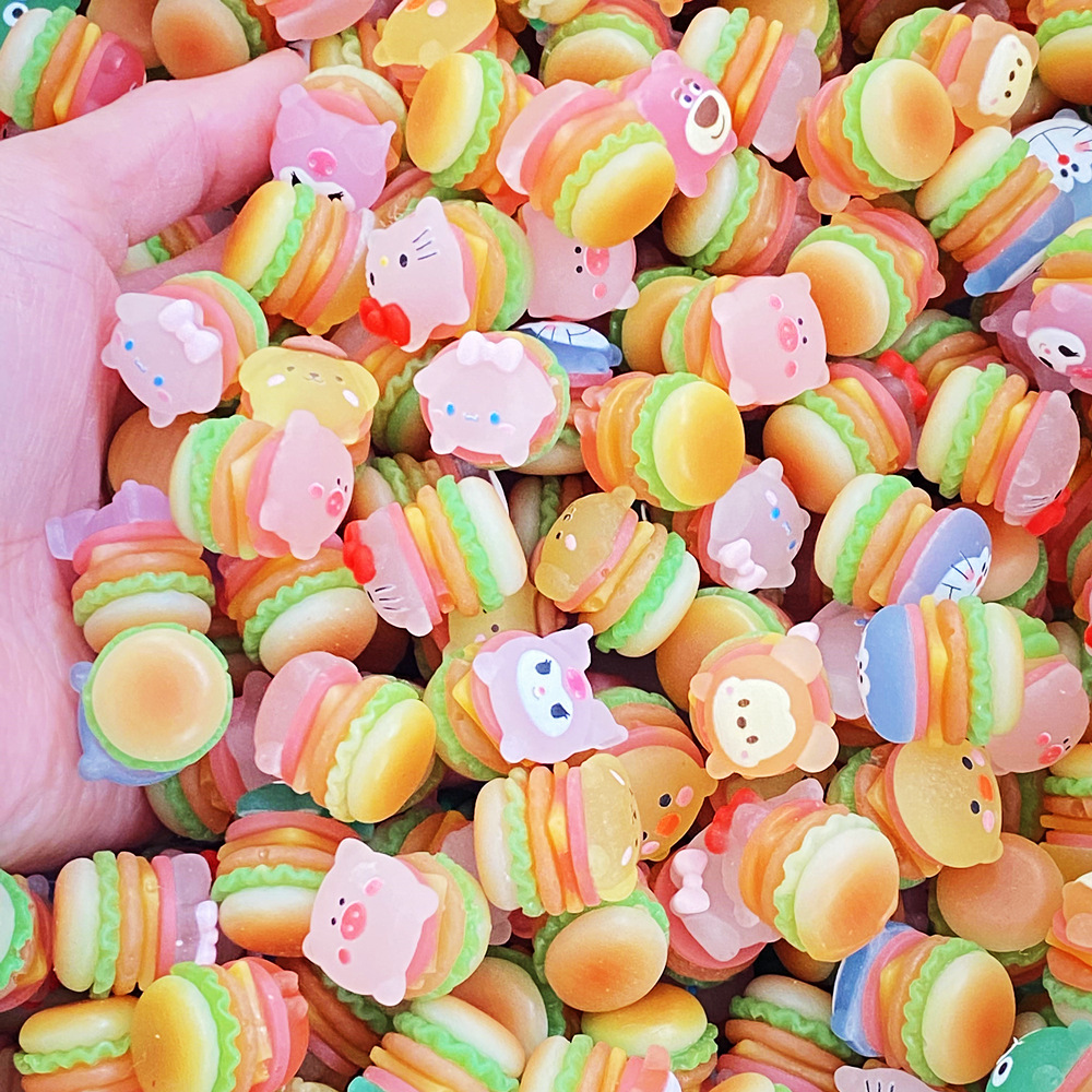 Aksesori perhiasan kartun hewan hamburger bercahaya casing ponsel lem krim panas langsung bahan dekorasi lampu malam