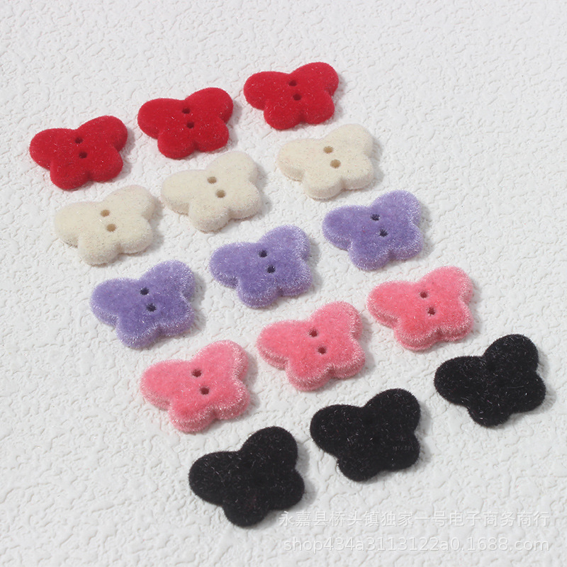 现货塑料植绒纽扣蝴蝶型植绒扣子女士服装儿童服饰DIY百搭装饰扣