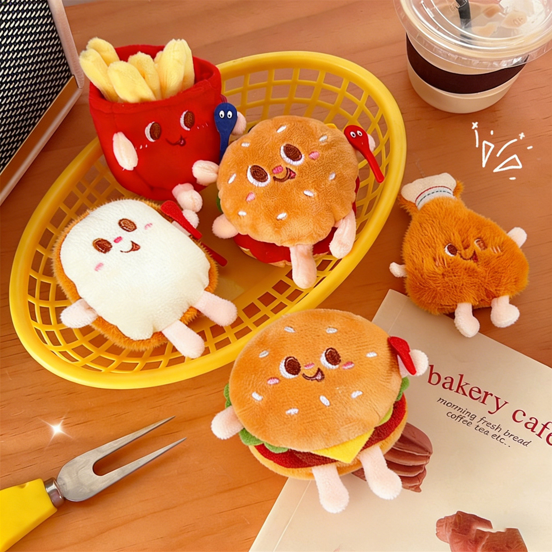 Gantungan Plush Berderit Kartun Bros Boneka Roti Kentang Goreng Burger Bahan Aksesoris Pakaian Kaki Ayam Gantungan Kunci